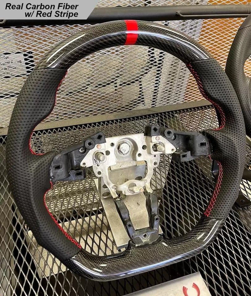 NEW 2024 Version: Now with slightly increased thickness, more contoured areas around the 3 o'clock and 9 o'clock positions, and a flatter bottom for even better ergonomics... AND now available in popular options like carbon fibre, hydro dipped "carbon look", and red stitching with red stripe!